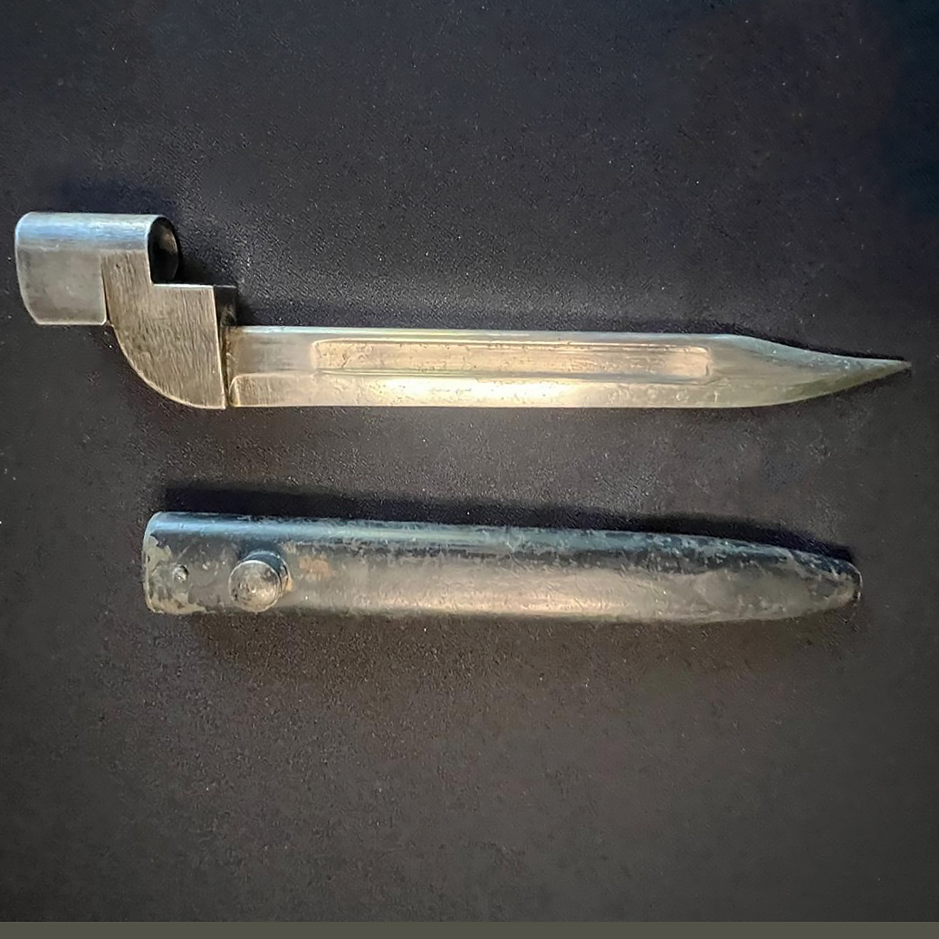 The bayonet is complete with its scabbard and remains in good overall condition.