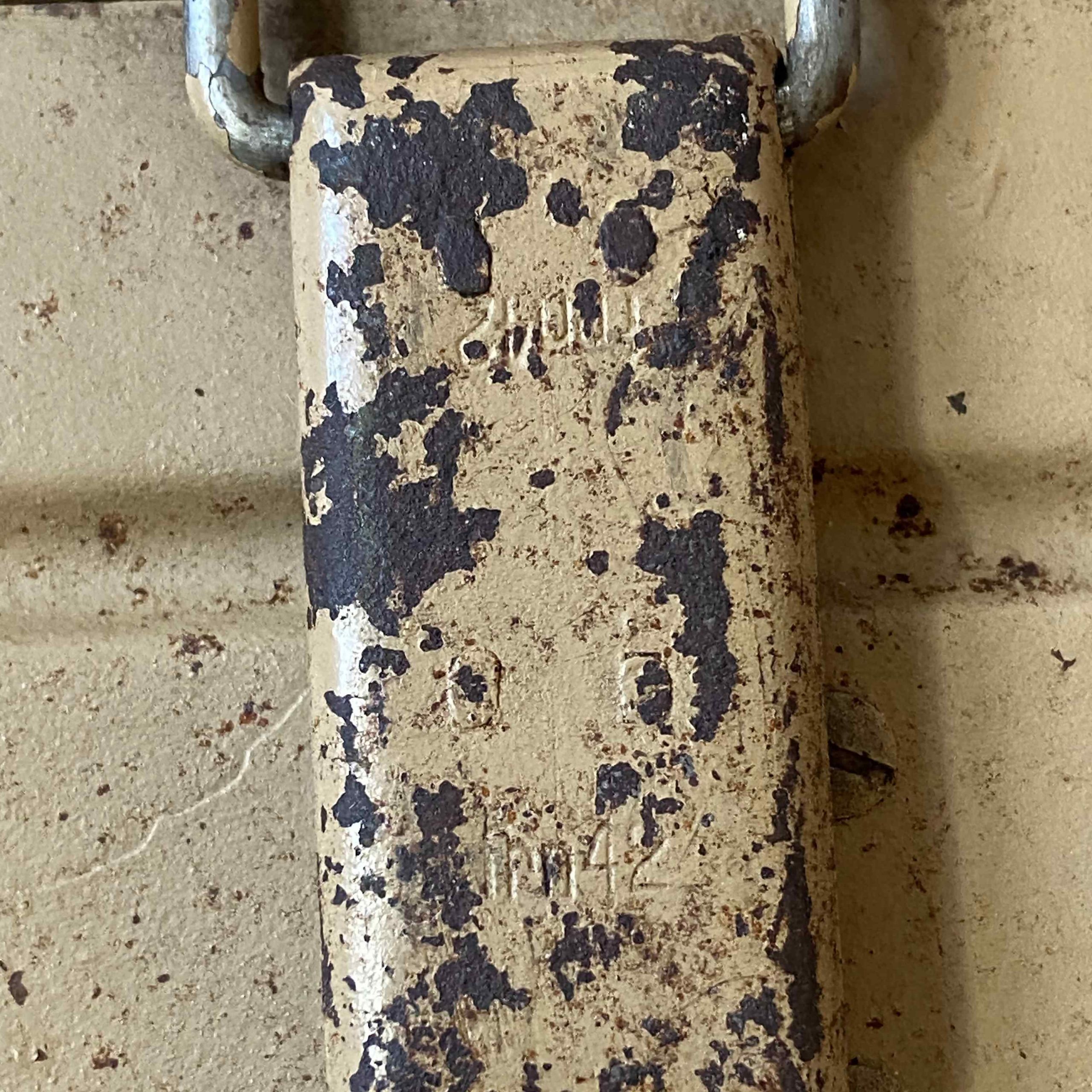 The scope has serial number 321708 and there is also a cross present, indicating packing with grease that could be used down to -40 degrees Celsius. It is complete with its spirit levels, which function without problem and rubber eyepiece. All adjustment drums function smoothly and the optics are a slightly hazy but usable. There is some external rusting to the side adjustment dial of the scope and the quick release lever needs freeing.